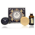 Este kit especializado en el cuidado facial masculino incluye un jabón de barba y rasurado; una cera para barba y bigote; y un frasco con aceite de argán.